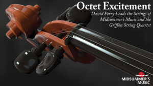 Unless you are an orchestral musician, experiencing our “Octet Excitement” program is about as close as you will get to experiencing what it is like to play in an orchestra. I use the word “experiencing” intentionally because I mean the whole nine yards. Sitting as close as you do to the musicians at a Midsummer’s Music concert gives you not only the sound, but the visual cues, the exquisite coordination, the vibrational feeling in your body, the joy, even that sixth sense that exists among highly motivated pros that brings them together as one. It’s a unique and powerful experience, and, as one who has experienced it all my life, I highly recommend it.